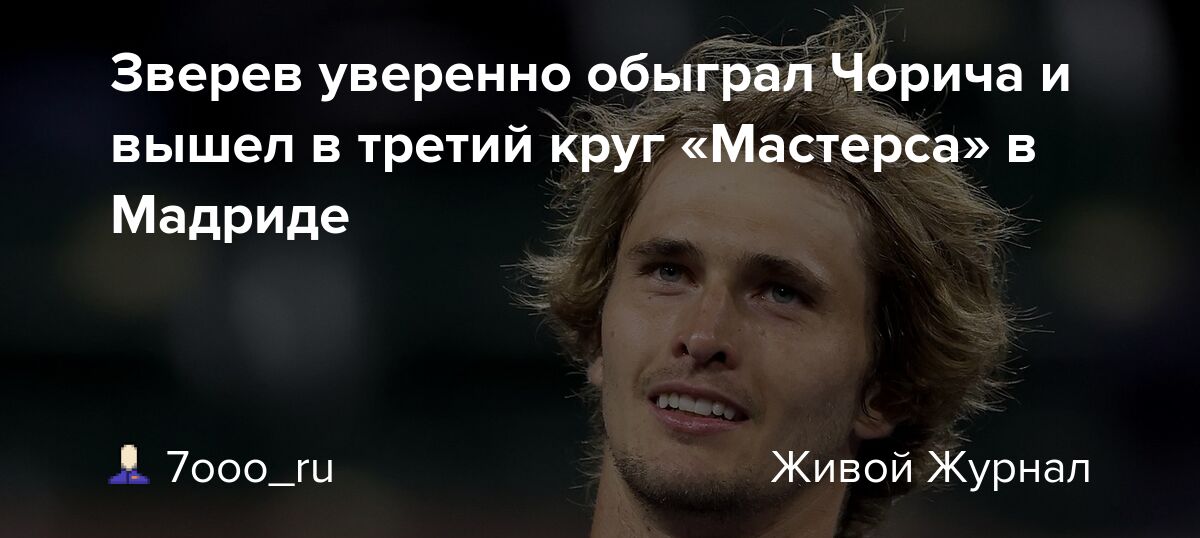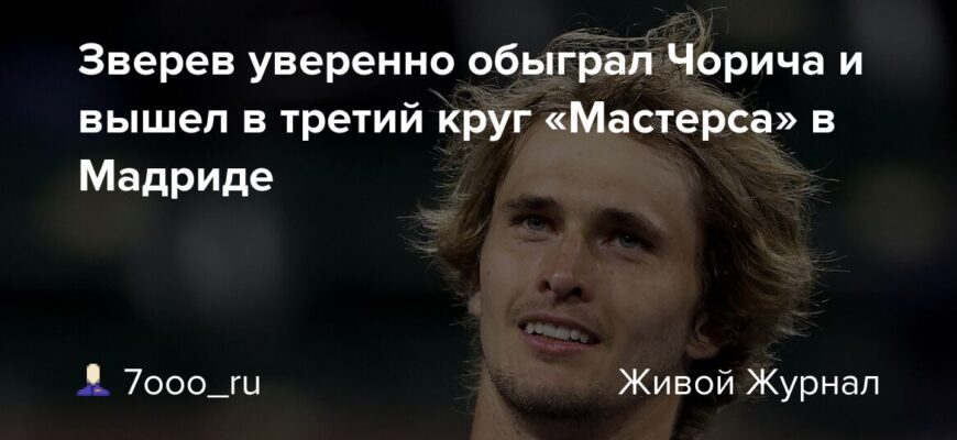 Немецкий теннисист Александр Зверев, занимающий вторую строчку мирового рейтинга ATP, успешно преодолел второй круг турнира серии “Мастерс” в Мадриде. Его соперником стал испанский спортсмен Роберто Баутиста-Агут, находящийся на 55-й позиции в мировой классификации. Матч завершился победой Зверева со счетом 6/2, 6/2.