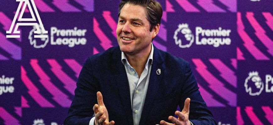 Игра слов, основанная на фамилии генерального директора лиги, сопровождалась эмблемами «Арсенала», «Ливерпуля», «Манчестер Юнайтед» и «Тоттенхэма».