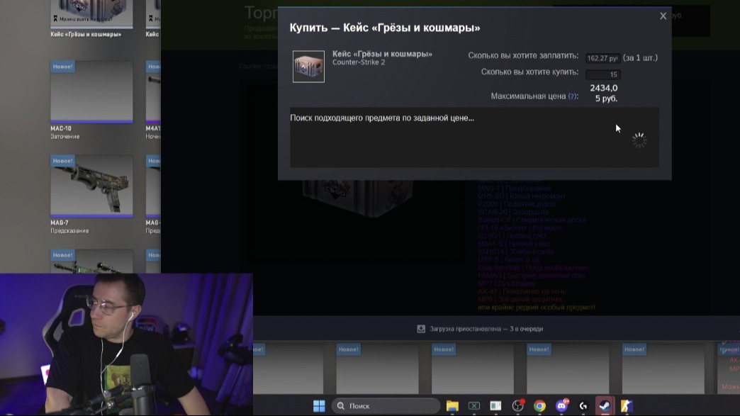 Известный стример Дмитрий Dmitry_Lixxx Лиханов в прямом эфире на Twitch решил испытать удачу и открыл кейсы «Грезы и кошмары» в Counter-Strike 2 на сумму свыше одного миллиона рублей. Целью была редкая награда – нож.