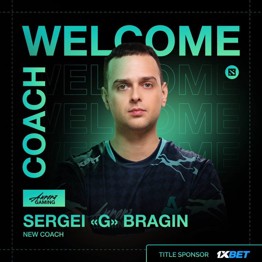 Киберспортивная организация Aurora Gaming объявила о присоединении Сергея `G` Брагина к своему составу. Брагин займет должность тренера Dota 2 команды. Об этом клуб сообщил в своих социальных сетях.