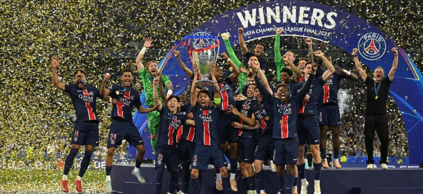 Футбольный клуб «Пари Сен-Жермен» впервые в своей истории стал обладателем трофея Лиги Чемпионов, одержав рекордную победу над миланским «Интером» со счетом 5:0.