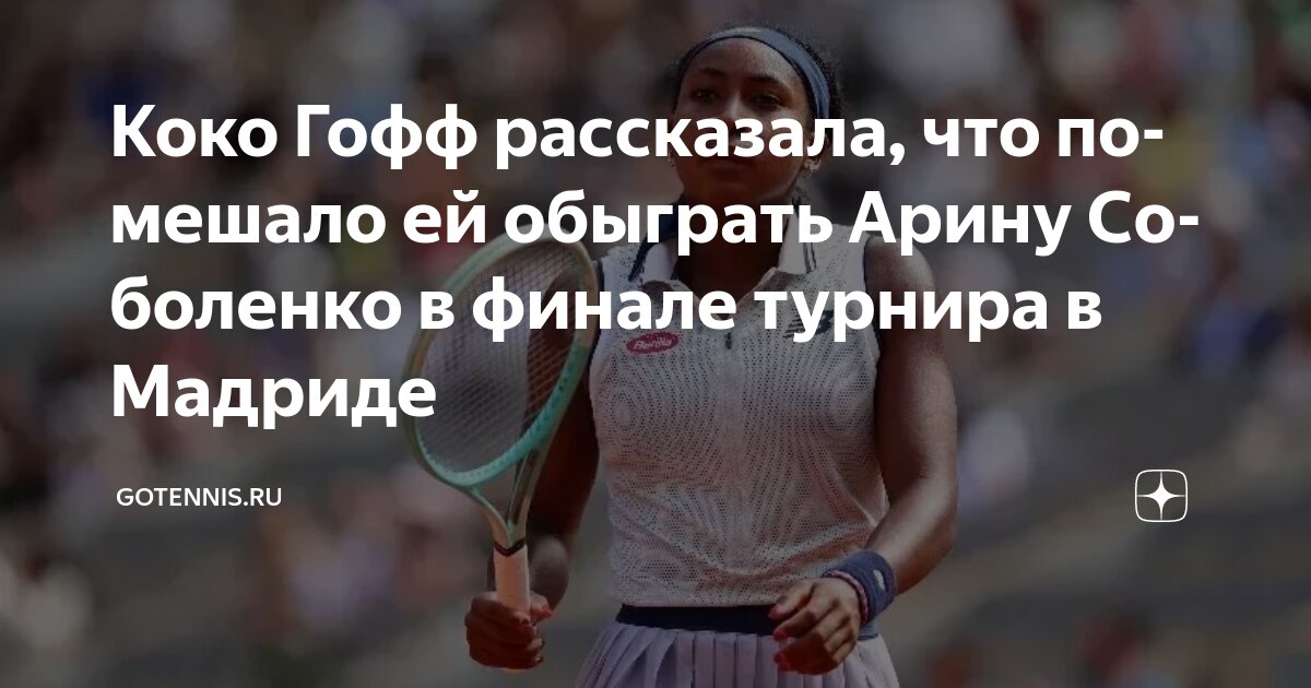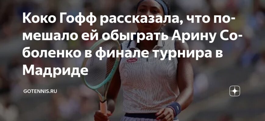 Четвёртая ракетка мира и чемпионка US Open-2023 Коко Гофф поделилась своими мыслями относительно поражения в финальном матче турнира категории WTA 1000 в Мадриде, где она встретилась с белорусской теннисисткой Ариной Соболенко. Американка уступила со счётом 3:6, 6:7(3), при этом во втором сете она имела преимущество 5:3.