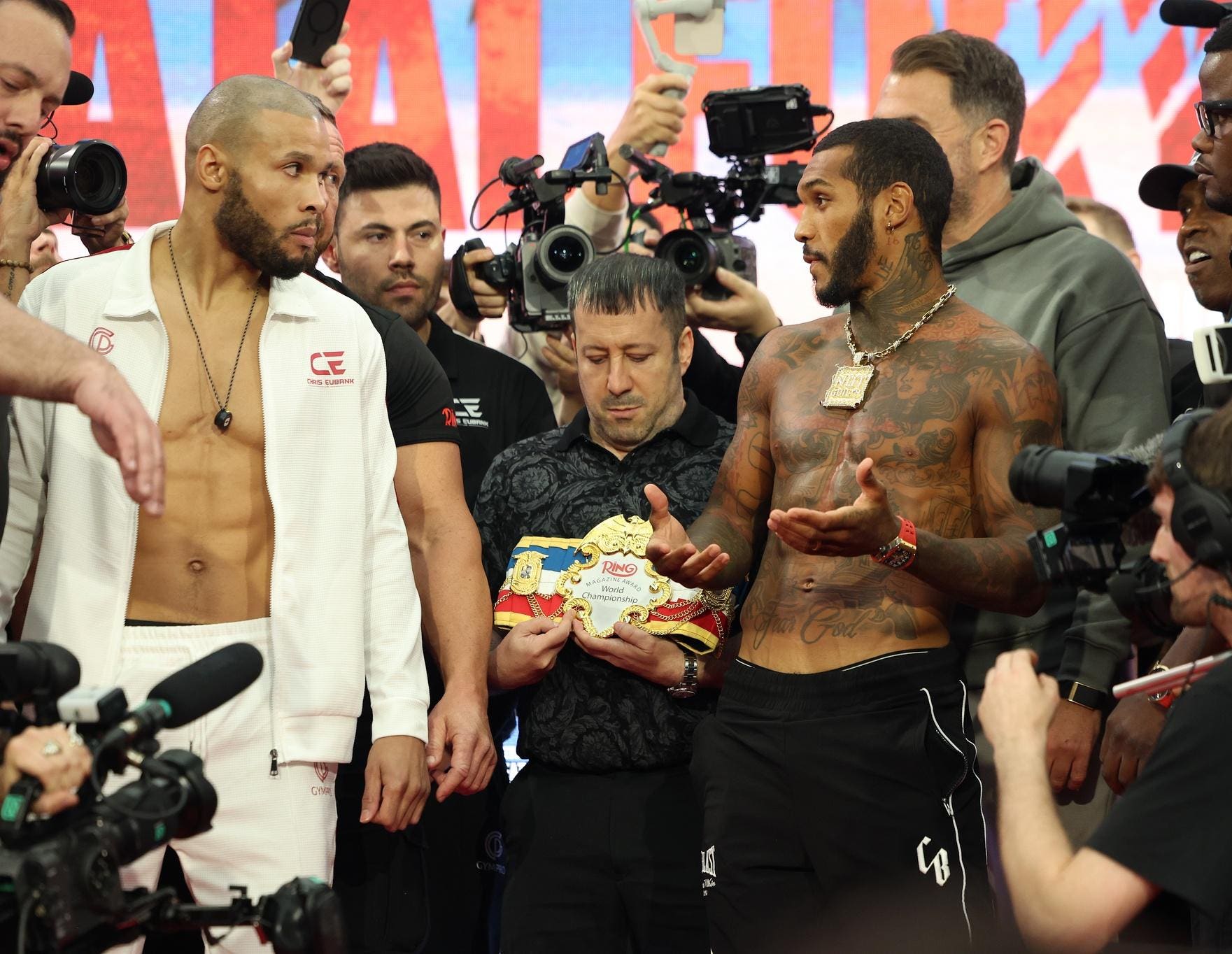 Изначально принципиальные соперники в 2022 году подписали контракт на промежуточный вес в 157 фунтов, что вызвало споры, поскольку Юбенк НИКОГДА не боксировал в таком низком весе.