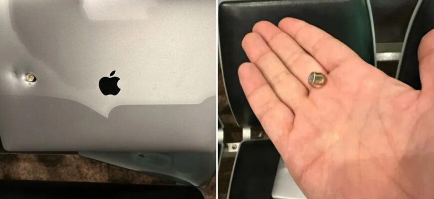 Китайский бизнесмен по имени Чжан поделился невероятной историей о том, как 1 октября его MacBook буквально спас ему жизнь, остановив пулю.