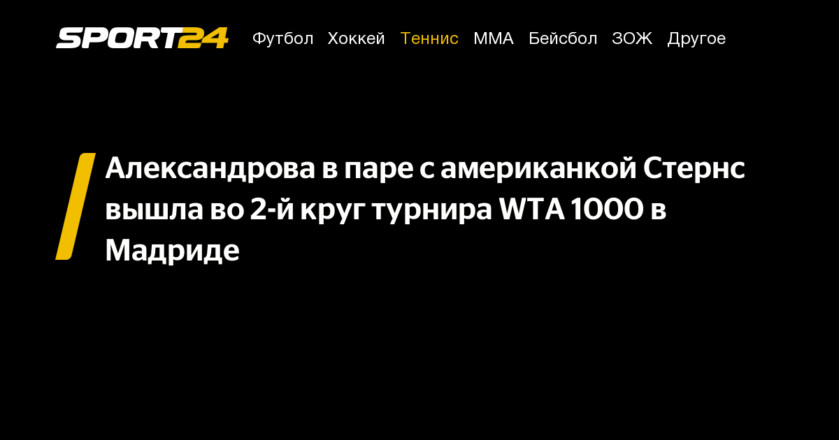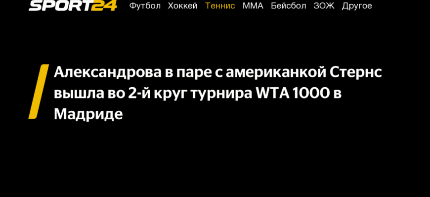 Российская теннисистка Екатерина Александрова, выступающая в паре с американкой Пейтон Стёрнс, завершила участие в парном турнире категории WTA 1000 в Мадриде. Во втором раунде соревнований они потерпели поражение от дуэта Виктории Азаренко из Беларуси и Эшлин Крюгер из США.