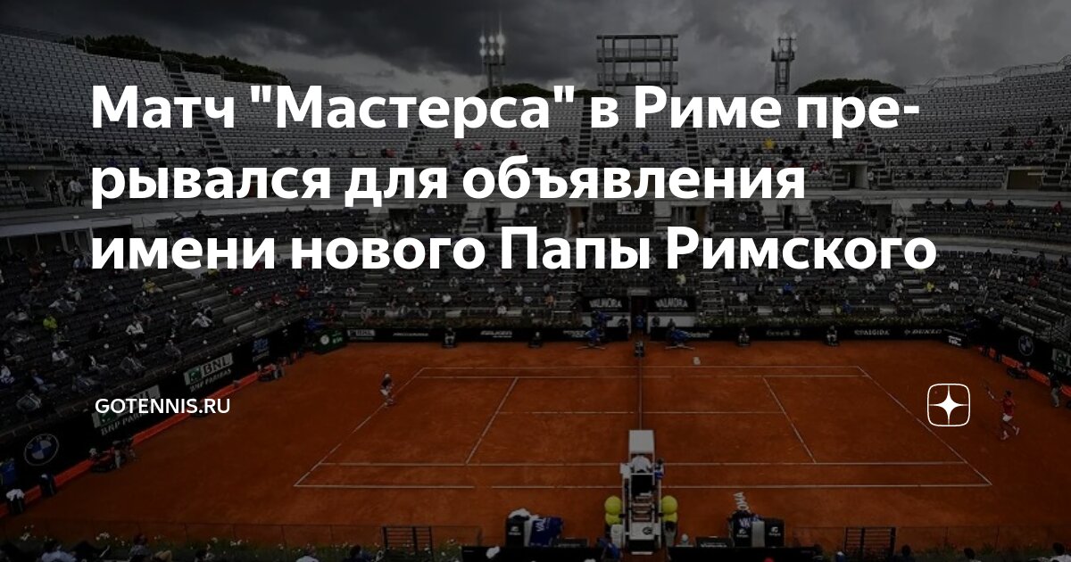 Необычный инцидент произошел на теннисном турнире серии “Мастерс” в Риме (Италия): матч первого круга между итальянцем Фабио Фоньини и британцем Джейкобом Фёрнли был приостановлен для того, чтобы объявить имя новоизбранного Папы Римского.