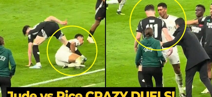 Джуд Беллингем вступил в словесную перепалку с Декланом Райсом во время напряженного матча между Реалом Мадридом и Арсеналом.