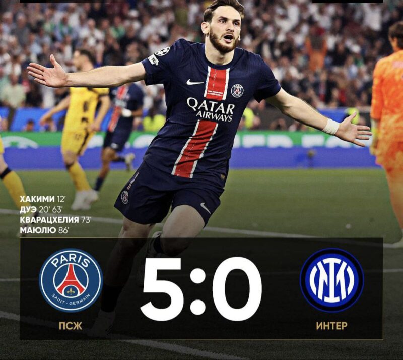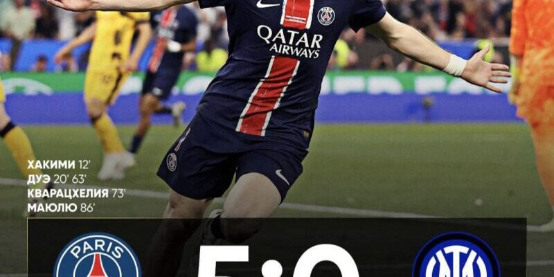 Пари Сен-Жермен (ПСЖ) разгромил Интер Милан и впервые в истории завоевал титул Лиги чемпионов.